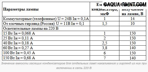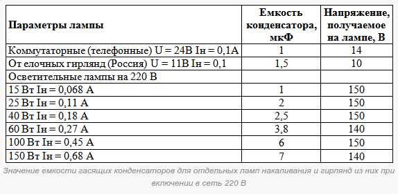 Конденсаторы можно использовать бумажные, неполярные, в изобилии имеющиеся в старых электроприборах. Ёмкость их подбирается по следующей таблице: