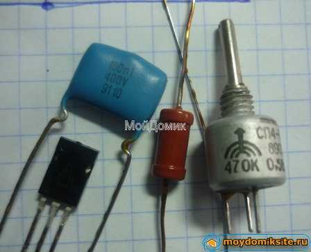 Обычный диммер прост и дёшев в изготовлении, так как для этого требуется небольшое количество вполне доступных радиодеталей. Вот главные из них: