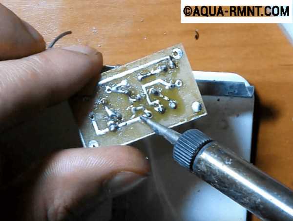 Её изготовление требует некоторого навыка, но зато прибор получится миниатюрным и более надёжным. Дорожки на плате, как и жилы проводов при навесном монтаже, необходимо лудить. Процесс пайки также ничем не отличается.