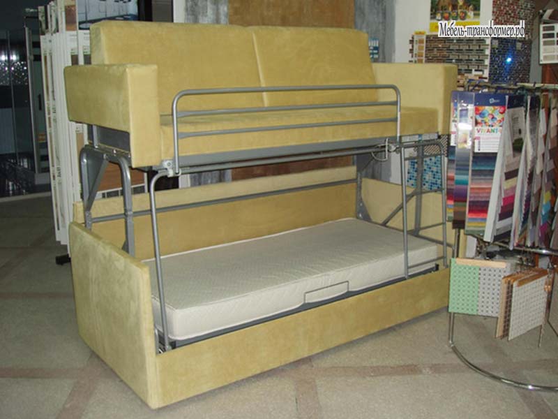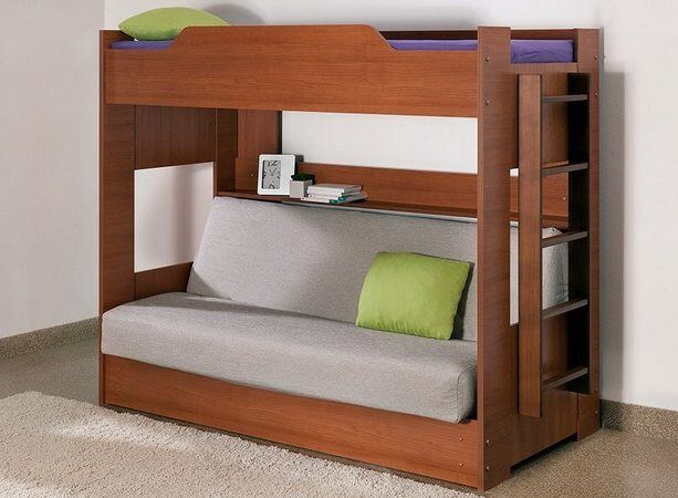 Двухуровневая кровать-диван для маленькой детской комнаты