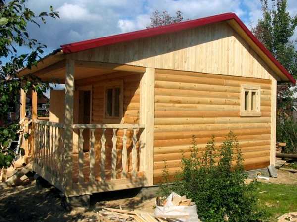Баня с большой террасой из клееного бруса с отделкой блок-хаус
