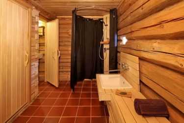 - Надежность. Не стоит использовать недолговечные, слабоустойчивые к воздействию высоких температур и влажности материалы. Именно поэтому на стенах оптимальным решением будут лиственные породы дерева, а на полу – керамическая плитка (дерево также подойдет, но оно менее долговечно).