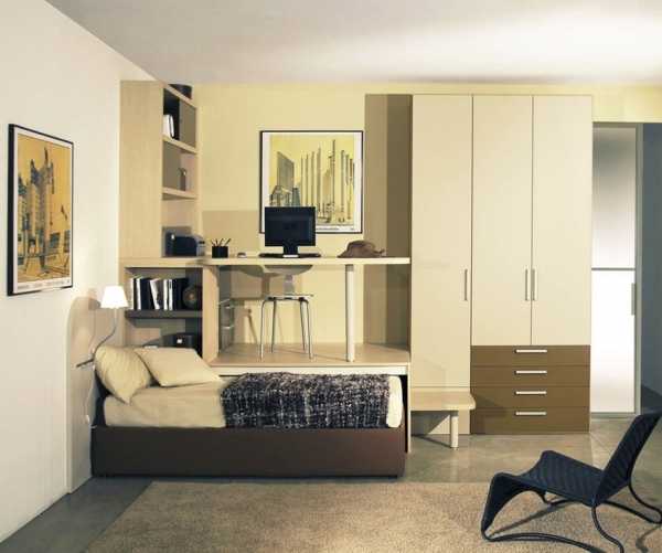 Если же вам не нравиться вариант с одноместной кроватью, то стоит задуматься о приобретении кровати трансформер. Такая кровать идеально впишется в ваш интерьер, а так же с его деталями.