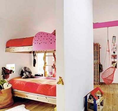 В этом случае пригодятся приемы зонирования. Одна часть комнаты будет применяться для мальчика, другая для девочки. Для этих целей можно использовать шторы, шкаф, или стол, перегородки, выполненные из гипсокартонного материала. Рабочая зона может оставаться общей, применяйте симметрические варианты оформления.