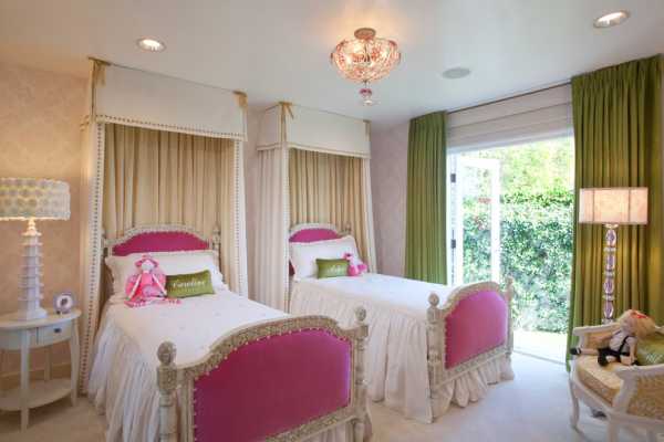 Дизайн лучше предоставить выбрать девочкам самостоятельно, чтобы подчеркнуть их индивидуальность. К тому же им будет важно, что вы прислушиваетесь к их мнению. Идеи для декора могут быть разными: постельное белье с любимыми героями, балдахин, украшение стены над кроватью детскими рисунками и фото.