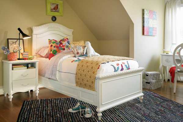 К 3 годам ребенок уже «выбирается» из своей маленькой кроватки. Самое время подобрать для девочки большую взрослую кровать. Как правило, габаритные размеры кровати в пределах 90х180 см, а высота допустима разная. На ней ребенок может комфортно спать до 10 лет и даже больше.
