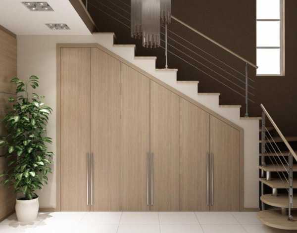 К примеру, гардеробную можно расположить под лестницей на второй этаж, на чердаке и даже прямо за кроватью.