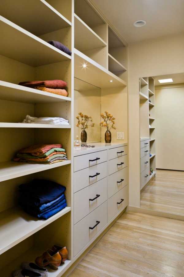 Нельзя забывать и про то, что, если гардеробная предназначается для нескольких человек, ее лучше расположить так, чтобы доступ к ней был свободным для всех пользователей. То есть она должна располагаться отдельно от спальни или других личных помещений, иначе это будет вызывать некоторый дискомфорт.