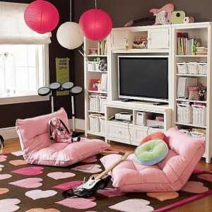 Если пространство позволяет, рекомендуется приобрести небольшой диванчик, на котором ребенок будет проводить время с подружками. Более молодежный вариант — кресла-мешки разных цветов. В возрасте от 14 лет можно задуматься о покупке телевизора.