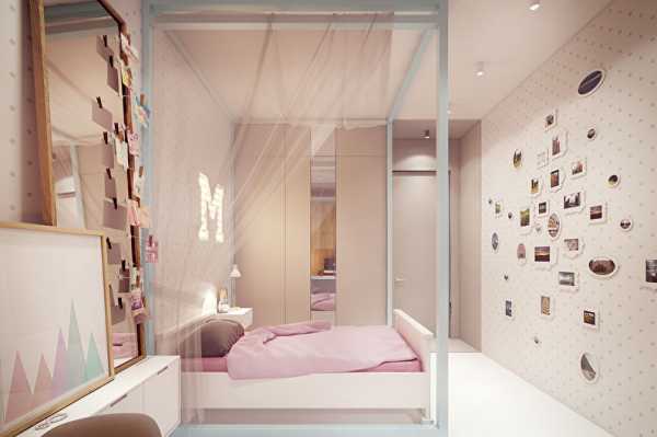 Даже если девочка очень стремится украсить свою комнату, постарайтесь ограничиться несколькими картинами и фигурками, так как обилие деталей будет нагромождать дизайн. Ну и, конечно, чем светлее цветовая гамма, а также чем больше источников света — тем просторнее будет казаться маленькая детская.