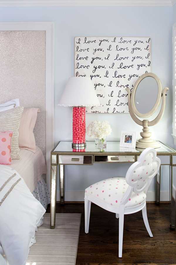 Девушке-подростку потребуется небольшой туалетный столик с зеркалом и небольшими ящичками для мелочей. Для взрослеющей красавицы очень важно, чтобы у нее было место для хранения косметики и всех необходимых принадлежностей.