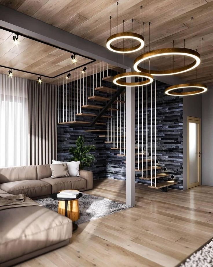 По своему основному функциональному предназначению гостиная является пространством для сбора семьи и приема гостей, а потому для нее выделяется самая просторная часть дома. Если эту роль необходимо выполнить длинной узкой комнате, стоит позаботиться о правильном разграничении пространства. По сути, вам предстоит разбить ее на несколько небольших зон для отдельных нужд. Но об этом мы поговорим немного позже, а для начала разберемся какие стилистические и цветовые решения наиболее уместны в данном случае.