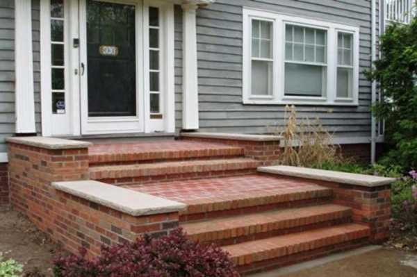 Зачастую у кирпичного крыльца основа из бетона или покрытие ступенек на основе других материалов. Встречаются варианты и с укладкой плитки на ступеньки. Это смотрится по-домашнему, внушает доверие и прибавляет зданию надежности. Но будьте осторожны, так как любое выбранное вами покрытие ступеней не должно быть скользким, иначе этот участок станет потенциально опасным в холодное время года из-за снега и наледи.