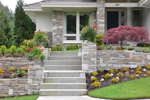 Эти дома притягивают дополнительное ландшафтное оформление. К крыльцу пристраивают высокий фундамент под клумбы, альпийской горки.