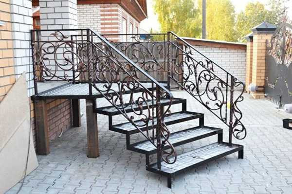 Обычно, если говорят о кованом или металлическом крыльце, то подразумевают декоративные части конструкции – навесы, перила, ступеньки, которые изготовлены на основе металла. Но иногда устанавливают и полностью металлическое крыльцо в частном доме.