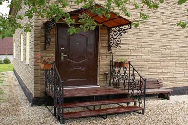 Из металла. Такие сооружения большой популярностью не пользуются и поэтому их строят на боковых и задних дверях. Многие все же занимаются постройкой крыльца у парадного входа, но в этом случае приходится прибегать к помощи высококлассных специалистов и дизайнеров.
