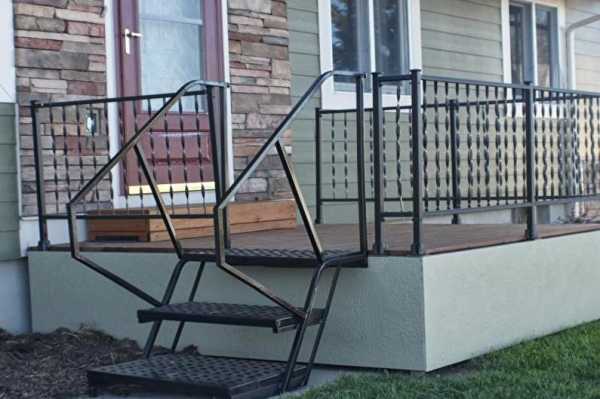 Основным преимуществом, которым обладают подобные конструкции, является повышенная прочность и продолжительность эксплуатации. Однако вам придется постоянно красить и обрабатывать крыльцо, чтобы оно не испортилось из-за коррозии. Более того, металлической пол будет достаточно холодным, поэтому он не подойдет для обустройства террасы. Последний вариант требует бетонной основы или настила дерева на основу из металла.