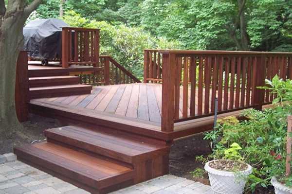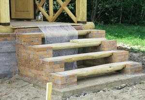 При наличии высокого фундамента у сооружения необходимо оформить крыльцо, используя ступеньки. В результате терраса с зоной отдыха будет находиться на определенном возвышении, если сравнивать с уровнем земли. Оформляйте ступеньки и покрытие пола камнем или бетоном, деревом с пропиткой или кирпичом, чтобы обеспечить защиту от воздействия влажности или насекомых.