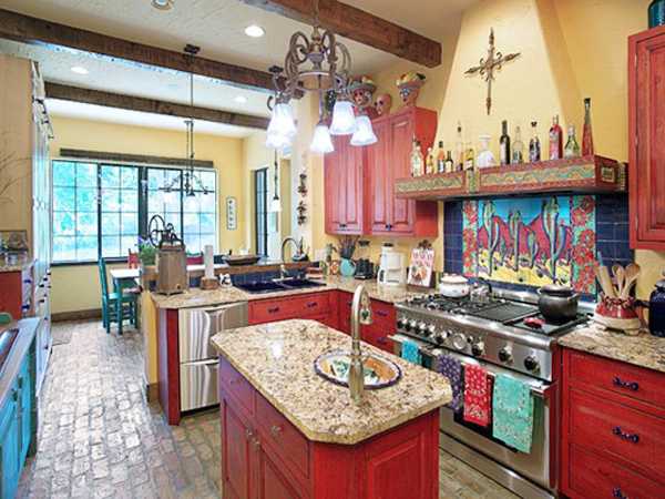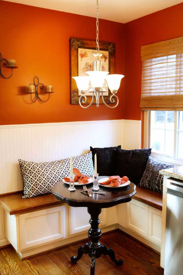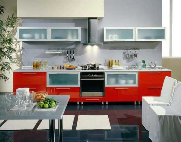 Цвета для оформления подбираются «аппетитные»: красный, желтый, оранжевый. Не менее хорошо смотрится зеленый, белый, голубой, светло-серый или синий — препятствий нет.