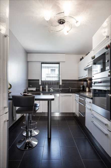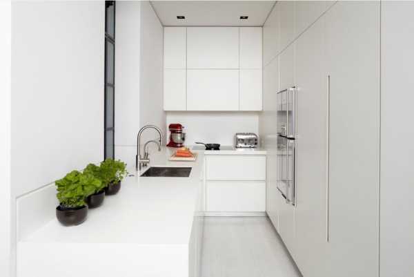 Если кухня узкая, то для нее оптимальным выбором будет линейное или параллельное размещение. В первом варианте гарнитур вместе с рабочими поверхностями ставится вдоль одной длинной стены, во втором — с одной стороны лучше поместить мойку и плиту, а с противоположной — холодильник и шкафчики с продуктами.