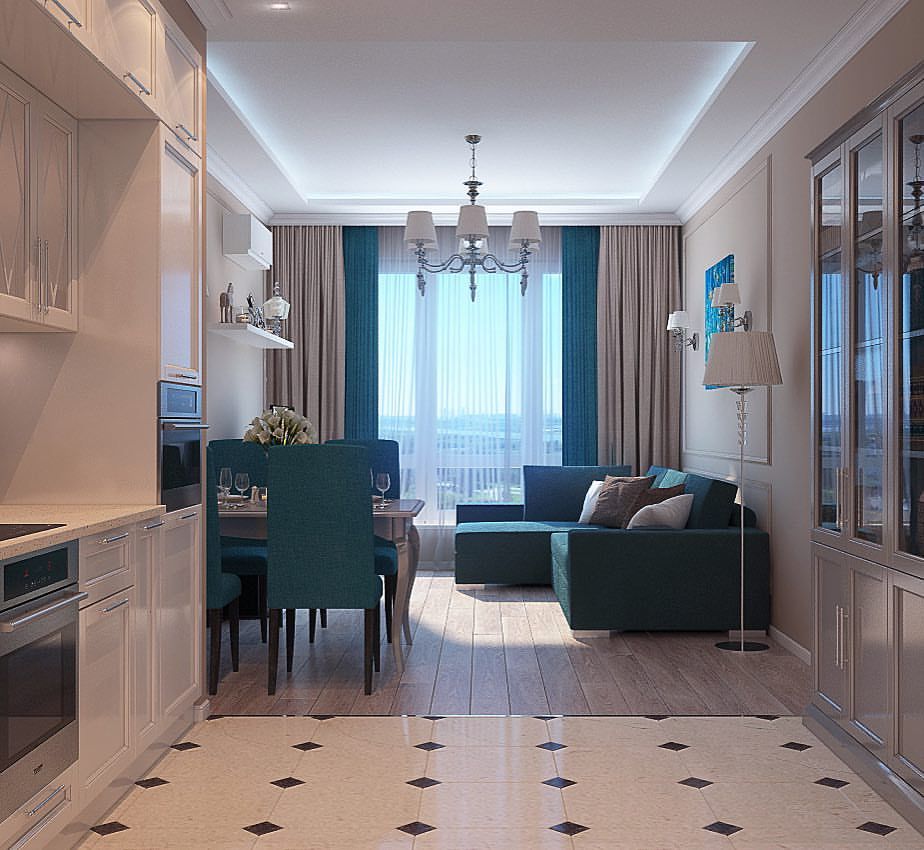 Популярные расцветки для кухни-гостиной 18кв.м.