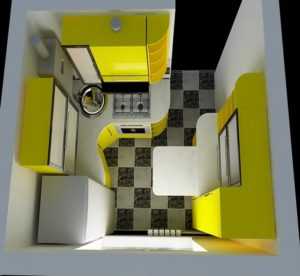 Малогабаритные кухни в квартире хрущевке имеют площадь 6 — 7 метров. Как правило, они почти квадратной формы, что облегчает задачу обустроить кухню. Классический проект кухни в 2-комнатной хрущевке – кухня без коридора, граничащая с гостиной. В некоторых 3-комнатных квартирах в хрущевке встречается крайне неудачная планировка, когда вход в ванну сделан со стороны кухни. В результате целая стена практически выпадает. Если учесть, что напротив находится линия окна, то получается, что в таких кухнях есть две короткие стены, вдоль которых разместить мебель почти невозможно без ущерба для функциональности кухни.