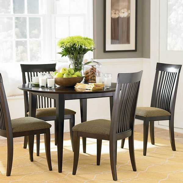 Что касается стола, то лучше отказаться от массивного изделия в пользу модели с аккуратными тонкими ножками и стеклянной столешницей. К такому столу отлично подойдут аккуратные и легкие стулья.
