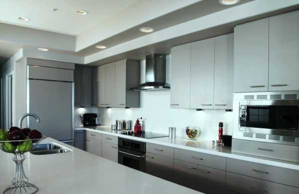 Хай-тек – более строгое направление. Здесь внимание привлекут современные предметы техники, мебель с трансформационными свойствами, комбинации материалов, таких как пластик или металл. Особо ценится встраиваемая техника.