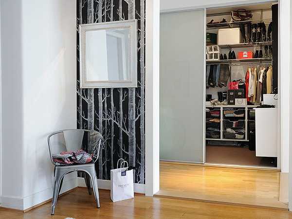 Для небольших прихожих можно сделать прозрачные раздвижные двери в гостиную, повесить зеркала во весь рост на стене или дверцах шкафа.