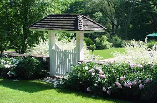 Совершенно изменить внешний вид калитки можно с помощью вьющихся растений, если рядом с ней или на её опорах устроить перголу. Украсят ворота и калитки (см. Оформление калиток различными материалами), сделают пользование ими более удобными специально устроенные козырьки, которые защитят от осадков всех входящих и механизмы и замки ворот.