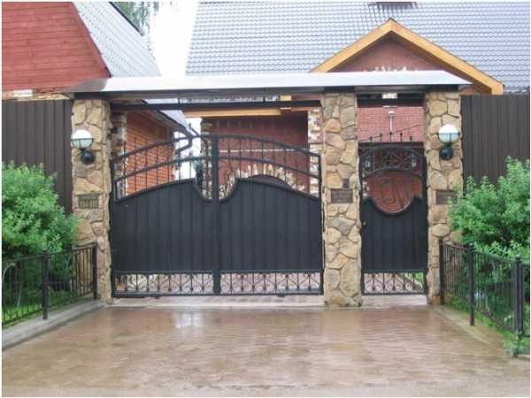 Въездные ворота в частный дом, фото которых находятся ниже, могут быть: