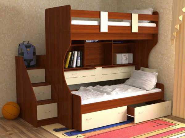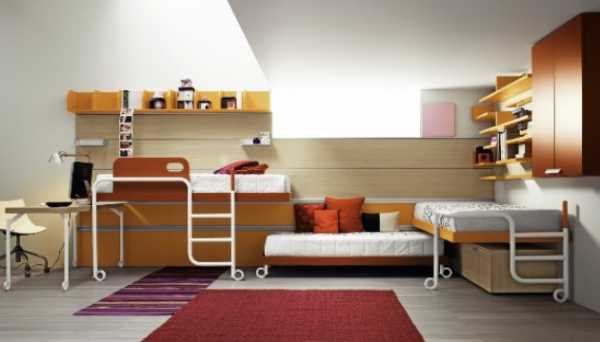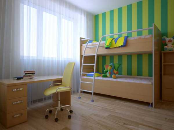 Наиболее целесообразным вариантом для обустройства обстановки в небольшой комнате является двухъярусная кровать. Её огромный плюс в том, что она позволяет сохранить полезную площадь, обеспечивая личное спальное место для каждого из ребят.