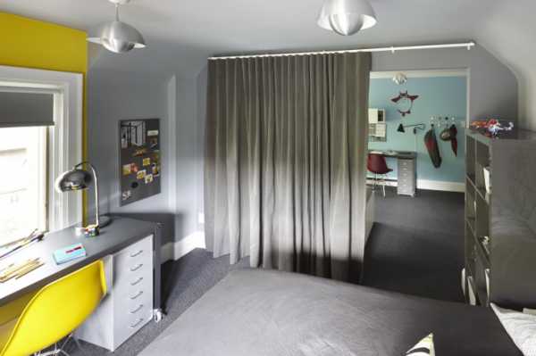 Многие дизайнеры применяют зонирование площади: зона отдыха и сна, зона игр, рабочее место, гостевая зона. Причем владения каждого мальчика необходимо уравновесить, ведь дети так любят соперничать между собой.