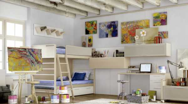 Более сложно разработать дизайн детской комнаты, если один из детей дошкольник, а второй – подросток, которому 13-15 лет. В этом случае лучшим вариантом будет распределить детскую комнату на зоны, разделив рабочее место школьника и игровую зону малыша. Даже если этот раздел будет почти символическим, каждый из детей будет иметь небольшое личное пространство, позволяющее чувствовать себя комфортно.