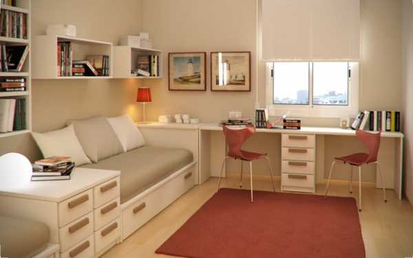 - максимально нужно задействовать пространство стены и под мебелью, например, на подоконнике можно оборудовать место для хранения книг и школьных принадлежностей;