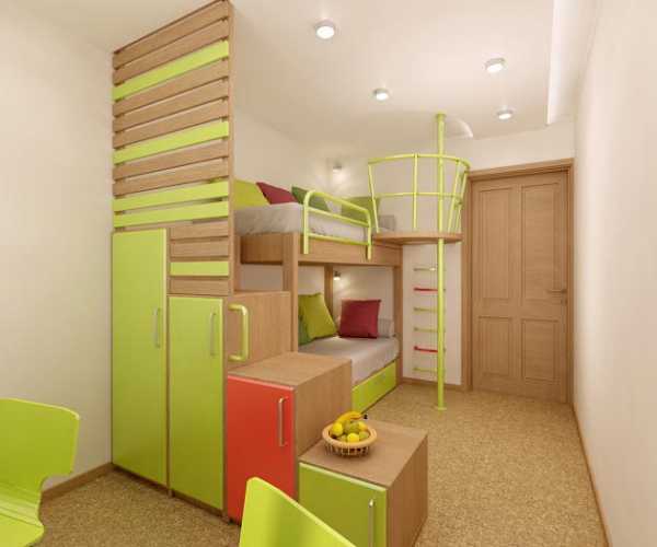 - разделение площади на индивидуальные зоны, в каждой из которых можно выделить место для игр, учёбы и отдыха;