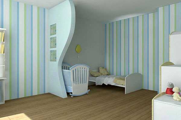 Чаще всего для отделки стен используются обои. При их выборе нужно учитывать некоторые параметры комнаты, например, для маленьких помещений лучше всего выбирать обои с мелким рисунком, вертикальной или горизонтальной полоской. Это позволит визуально увеличить комнату. В детской комнате должно быть минимум тёмных и ярких тонов, если только это не комната для детей-подростков, которые самостоятельно выбрали данную концепцию.