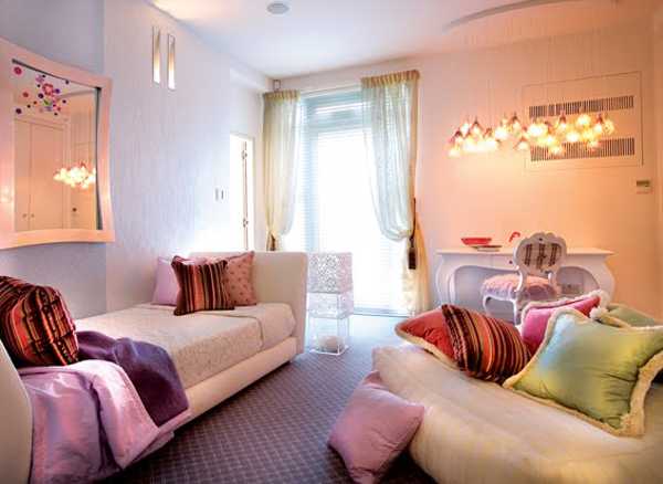 - Комната с ярким настроением. Очень важен свет в оформлении помещения.