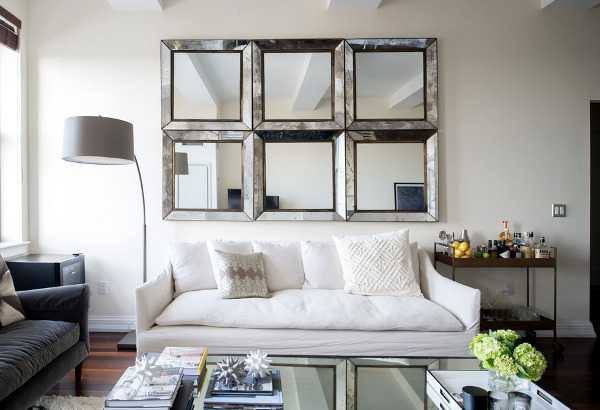 Наличие правильно декорированного окна решит вопрос дневного освещения. Сделать его максимально эффективным поможет обилие отражающих поверхностей в обстановке, рационально повешенных зеркал.