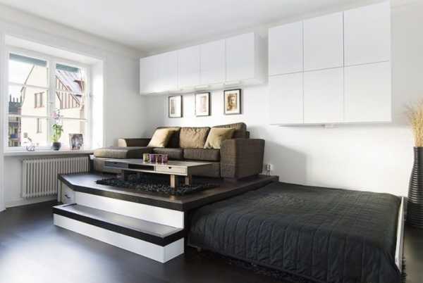 Еще одним вариантом зонирования является наличие подиума, то есть возвышения определенной зоны. Такой способ получил в последнее время широкое распространение.