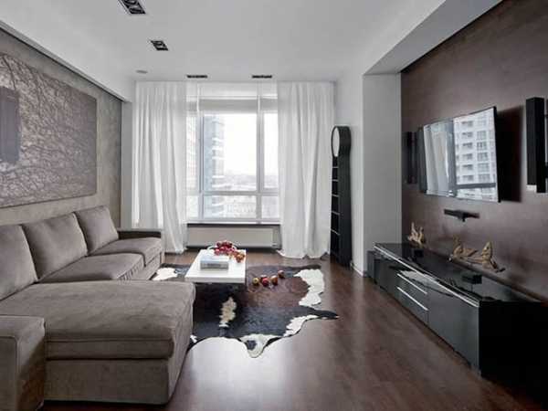 Стильный и сдержанный модерн так же хорош для скромных обителей. Он чрезвычайно гармоничен. Его киты: 3D фактуры, натяжной потолок, неброский фон отделки полов и стен. Обилие мебели неуместно. В интерьер принято добавлять самое необходимое.