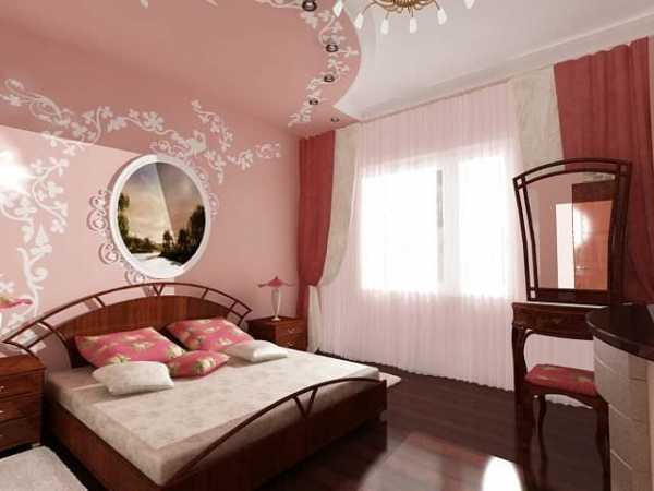 Панельная многоэтажка. Пространство панельных многоэтажок больше, а потолок — выше, чем в «хрущевках», да и освещение на порядок лучше. Поэтому дизайнеры рекомендуют стены оклеить обоями более «веселых» оттенков, а декорировать спальню натяжными потолками или потолочными конструкциями.
