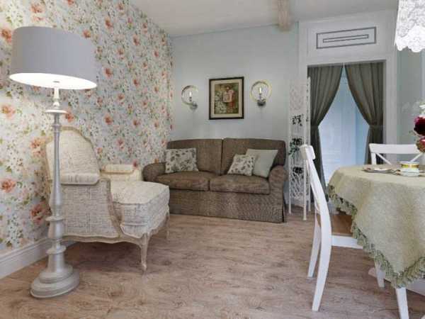 Провинциальные направления также выделяет обилие декоративных элементов, присутствие цветов, но при этом в обстановке совершенно отсутствуют признаки современности. Пол выстилается необработанной доской, а стены просто штукатурятся. Дополняет интерьер комнаты 12 кв. м мебель классического дизайна.