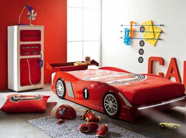 - На автомобильную тематику. Машинки — излюбленная мальчишеская тема. Дизайн детской комнаты для мальчика 5-10 лет будет идеален с кроватью в виде машинки, а вот комната подростка может быть декорирована фотографиями известных автогонщиков и газетными вырезками с соревнований.