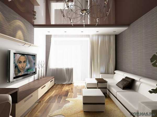 Особая роль отводится потолку – чем ниже высота потолков, тем светлее он должен быть. Идеальный вариант – глянцевый потолок белого цвета или теплых оттенков, близких к нему: слоновая кость, молочный, шампань и т.п.