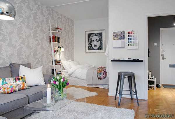 Окончательным штрихом в интерьере маленькой квартиры будет её дополнение аксессуарами. Вы можете сделать красивое панно своими руками, или купить красивый цветок из IKEA с горшочком, который будет радовать вас при каждом взгляде. Главное используйте все в меру, не переборщите с мелкими элементами, которые будут находиться на виду.