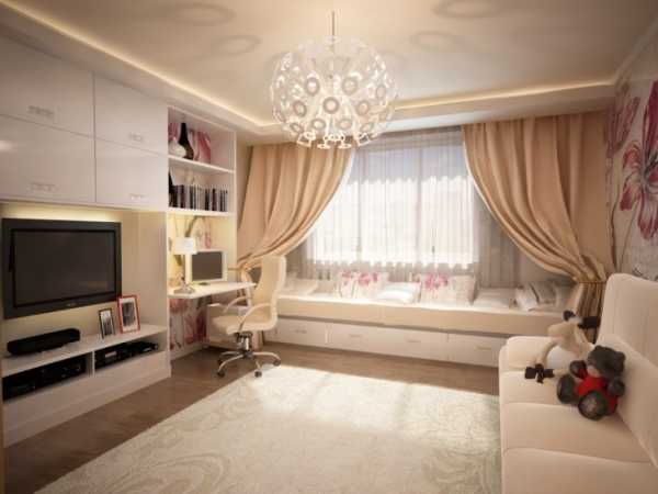 Рабочий стол желательно ставить у окна, а кровать – подальше от входной двери. Разделение между зонами осуществляется с помощью невысокой тумбы или узкого стеллажа. Кровать ребенка на ночь можно закрывать занавесью или переносной ширмой.