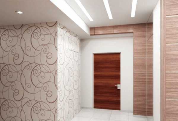Совет! При выборе материалов для коридора, предпочтение нужно отдавать светлым оттенкам, полотнам с небольшими рисунками, гладкой фактуре.