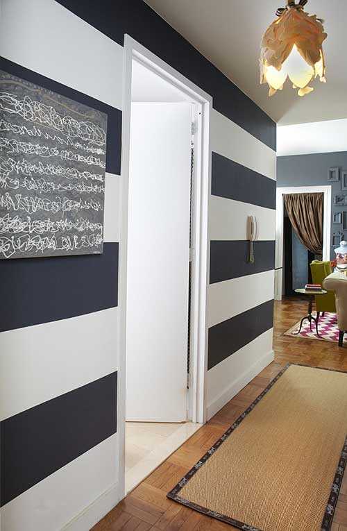 Полосы по вертикали сузят помещение, но приподнимут потолки, а горизонтальные – наоборот: сделают его более широким и длинным.