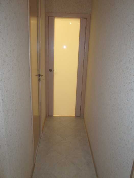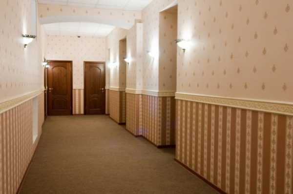 Если коридор узкий, то дальнюю стену можно оклеить обоями с более темным фоном, чем другие стены. Но рисунок пусть будет одинаковым.